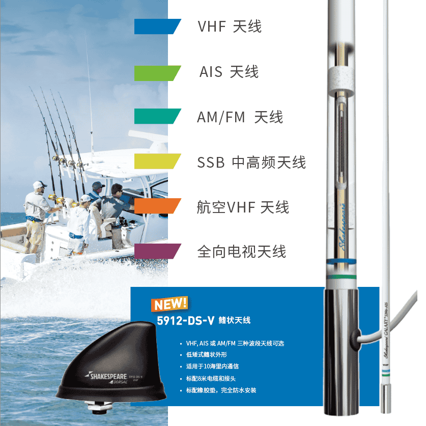 提供VHF/AIS/ MF/HFAM/FM船用天線、全向電視天線。