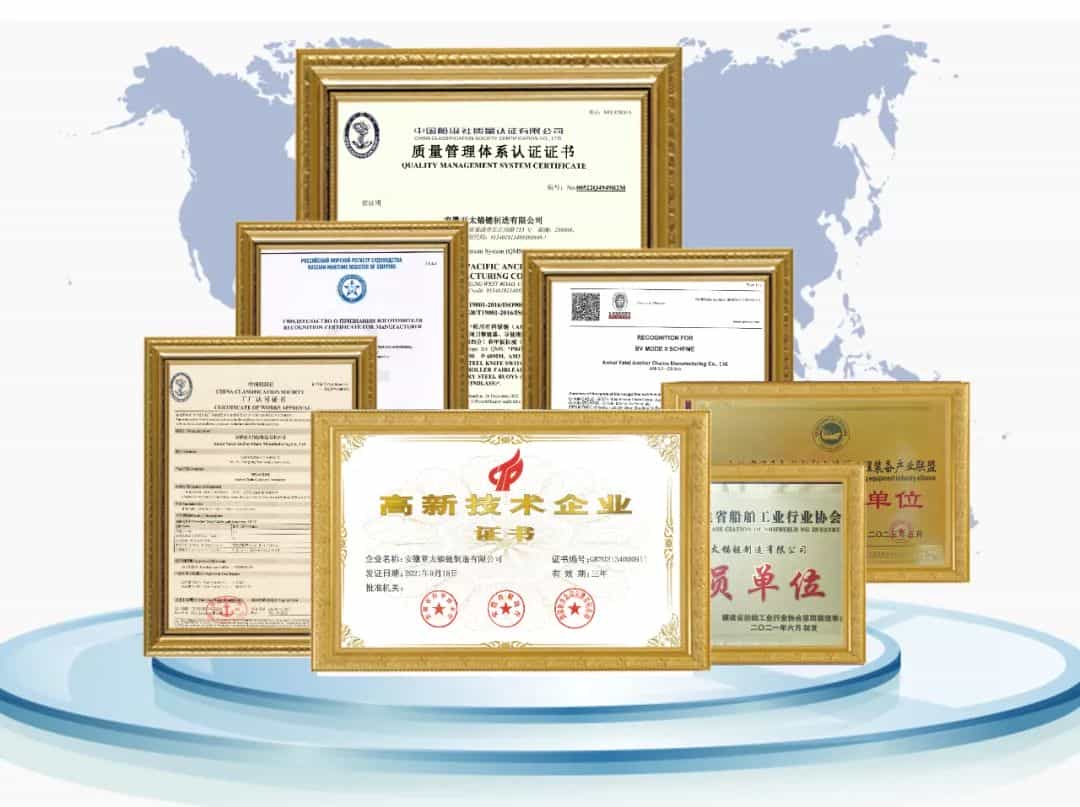 亞太錨鏈生產(chǎn)的產(chǎn)品,嚴(yán)格按照國家標(biāo)準(zhǔn)和船級社焊接規(guī)范要求生產(chǎn),并先后通過了GB/T19001-2016/IS09001: 2015質(zhì)量管理體系的認(rèn)證和中國(CCS)、俄羅斯(RS)、法國(BV)、美國(ABS)、印度(IRS)、德國(GL)、挪威(DNV)、日本(NK)、韓國(KR)、德國(GL)、意大利(RINA)等多國船級社的認(rèn)證,以及地方船檢(ZC)、漁檢(ZY)認(rèn)證。