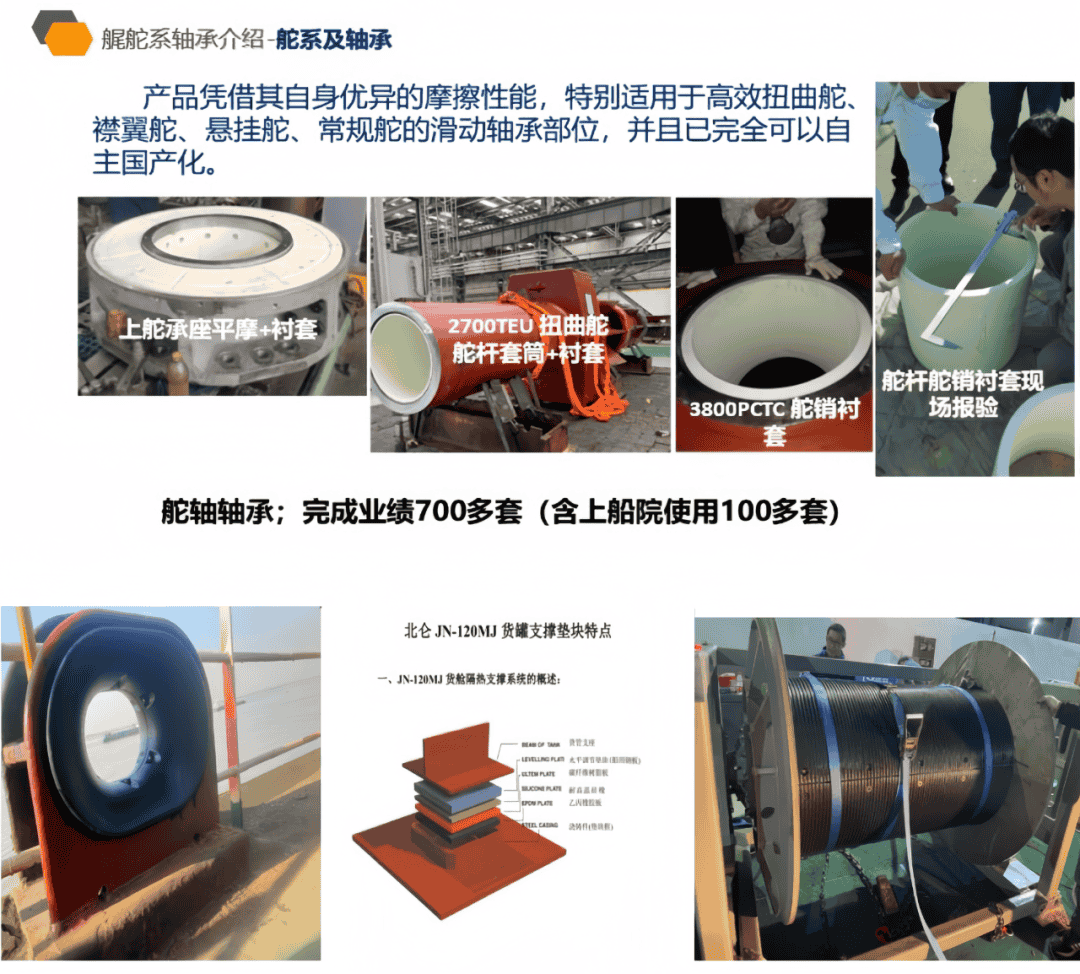 ① 高分子水潤滑艉軸承、舵軸承、水泵滑動軸承;