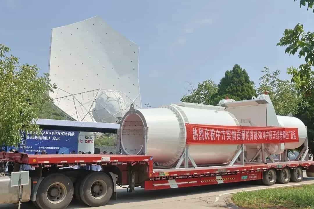 我國向平方公里陣列天文臺(tái)(SKAO)實(shí)物貢獻(xiàn)的首批平方公里陣列射電望遠(yuǎn)鏡(SKA)中頻天線結(jié)構(gòu)在中國電科網(wǎng)絡(luò)通信研究院完成出廠驗(yàn)收。