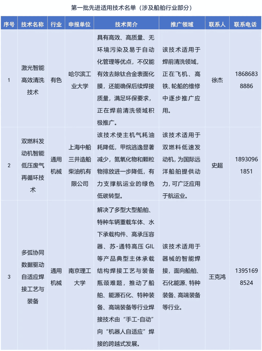 近日,工業(yè)和信息化部發(fā)布了第一批先進適用技術名單,共有111項技術入選,其中多項技術可在船舶行業(yè)推廣。
